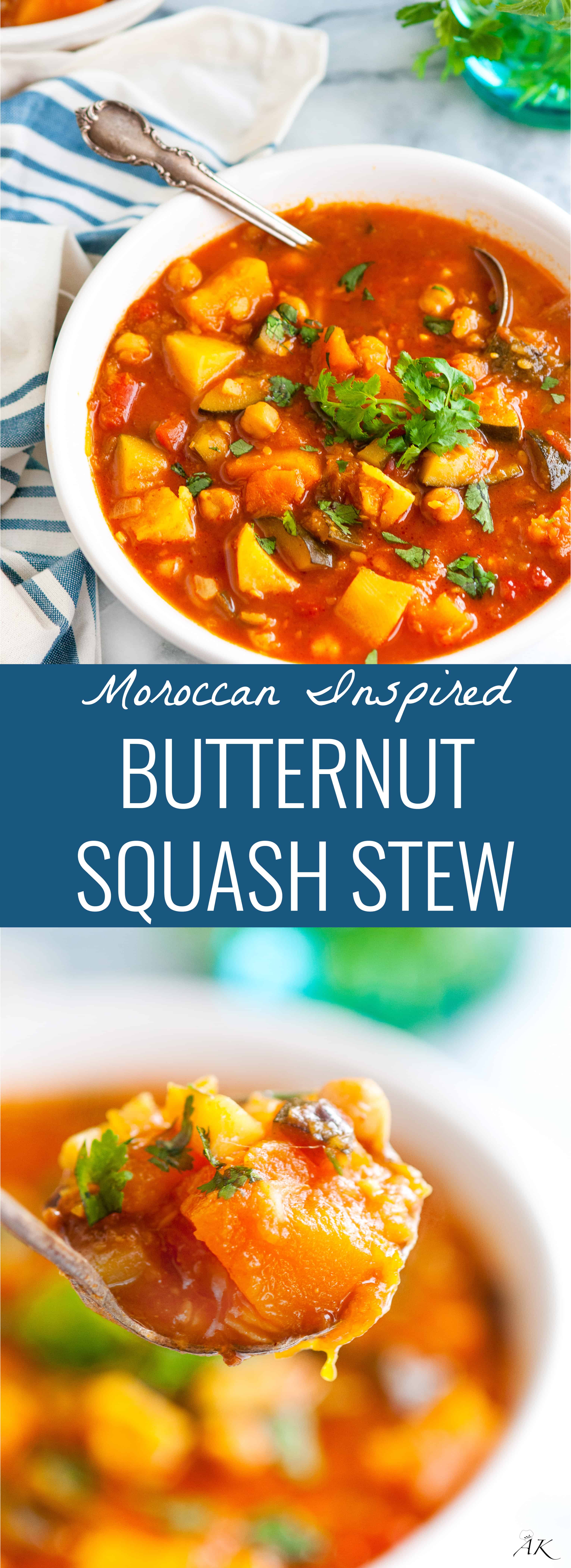 A feel-good roasted veggie dinner! You won't miss the meat ... from i.pinimg.com I love the sweet flavor the butternut squash. This recipe is vegetarian or vegan and gluten free. A warming stew for busy evenings, moroccan butternut squash chickpea stew is easy to pull together. Mound couscous on large serving platter, and. Stir in the tomatoes, squash, raisins, broth and 1 teaspoon of the salt and bring to a simmer. This moroccan stew comes together really quickly: This moroccan squash and garbanzos tagine recipe melds squash, shallots, prunes, chickpeas, and almonds, all served over couscous. Serve with yogurt, and garnish with mint leaves, if desired.